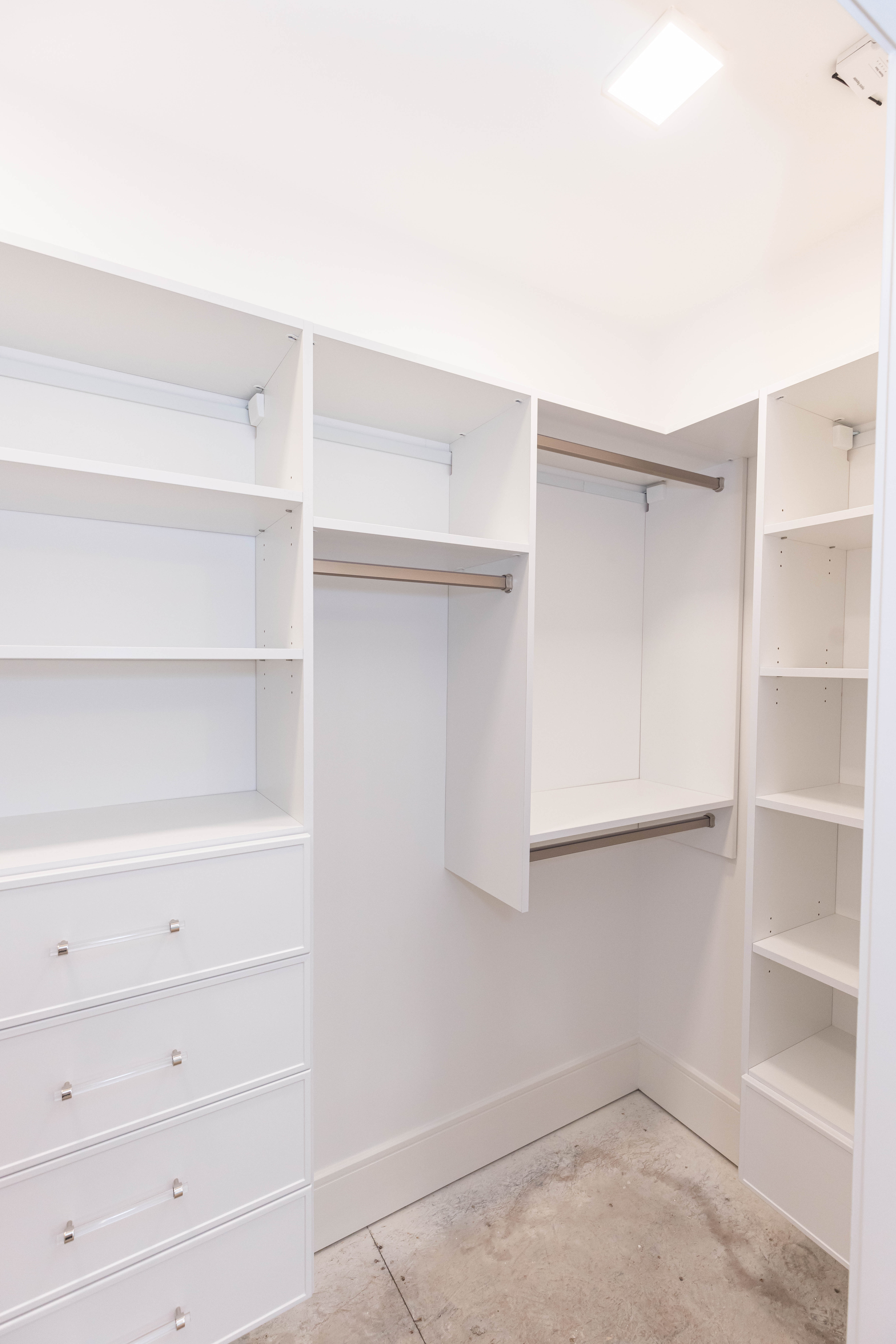 The key to a successful reach-in closet design is a combination of specialized components tailored to your specific wardrobe. At Diplomat Closet Design, we engineer a system that works for you.